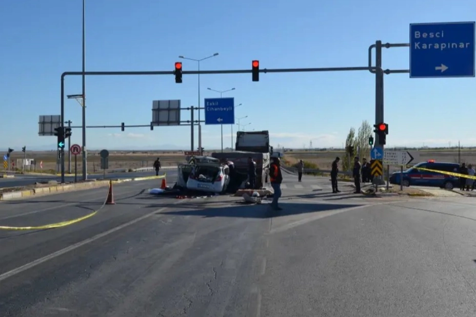 Kaza, sabah saat 07.30 sıralarında Aksaray-Konya kara yolu Eşmekaya beldesi girişindeki kavşakta gerçekleşti. İbrahim Doğan (19) yönetimindeki 09 ADJ 547 plakalı otomobil, kırmızı ışıkta bekleyen Sedat Özer’in (50) kullandığı 50 ABV 191 plakalı TIR’a arkadan çarptı.
